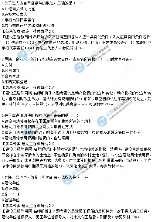 2019年二級(jí)建造師試題及答案解析-《法規(guī)》1-5題