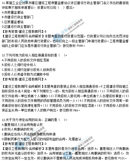 2019年二級建造師試題及答案解析-《法規(guī)》11-15題