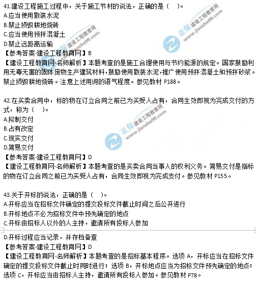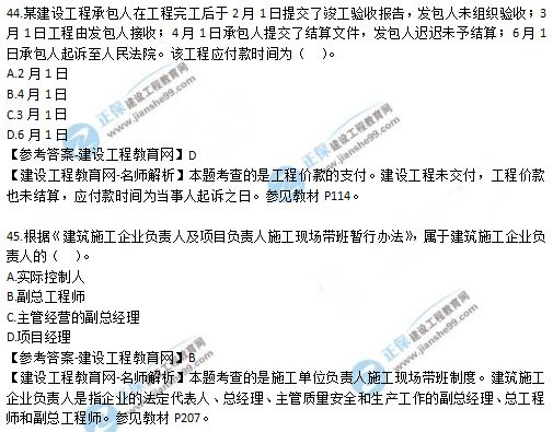2019年二級(jí)建造師試題及答案解析-《法規(guī)》41-45題