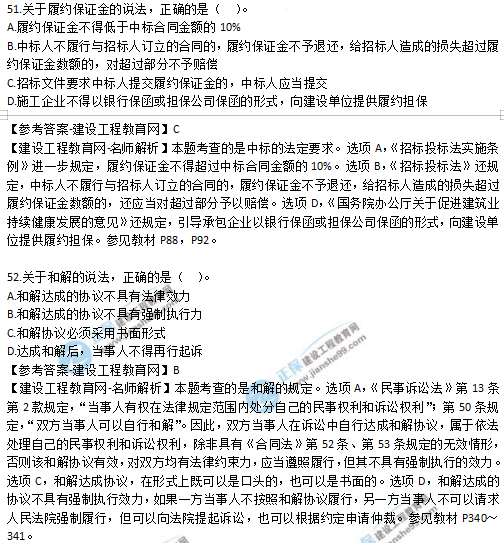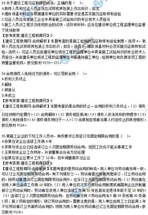 2019年二級(jí)建造師試題及答案解析-《法規(guī)》51-55題