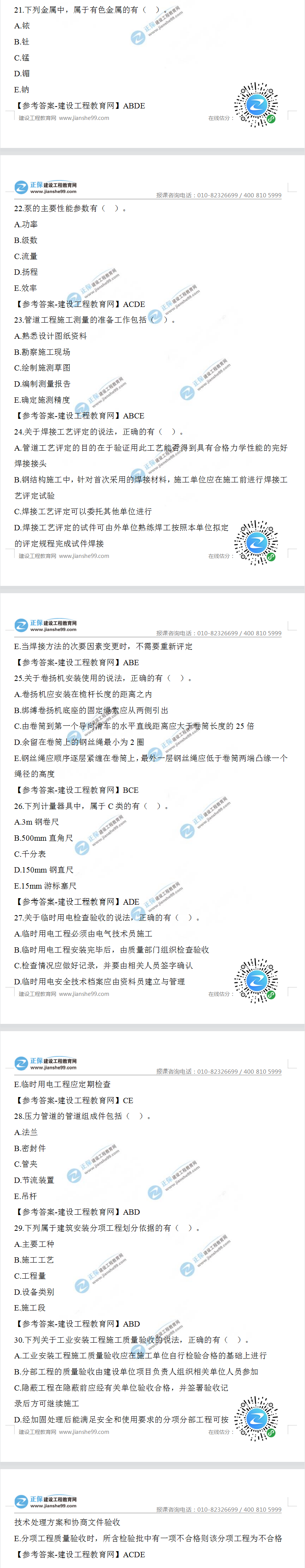 2021年二級建造師機(jī)電工程實務(wù)試題及答案第21-30題
