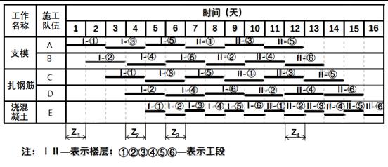 『答案解析』本題考查的是橫道圖進(jìn)度計(jì)劃的編制方法。如圖所示,第五天一層第一個施工段混凝土澆筑完畢。應(yīng)間歇一天再進(jìn)行第二層第一個施工段的支模。所以第六天位置(Z3)為層間間歇。