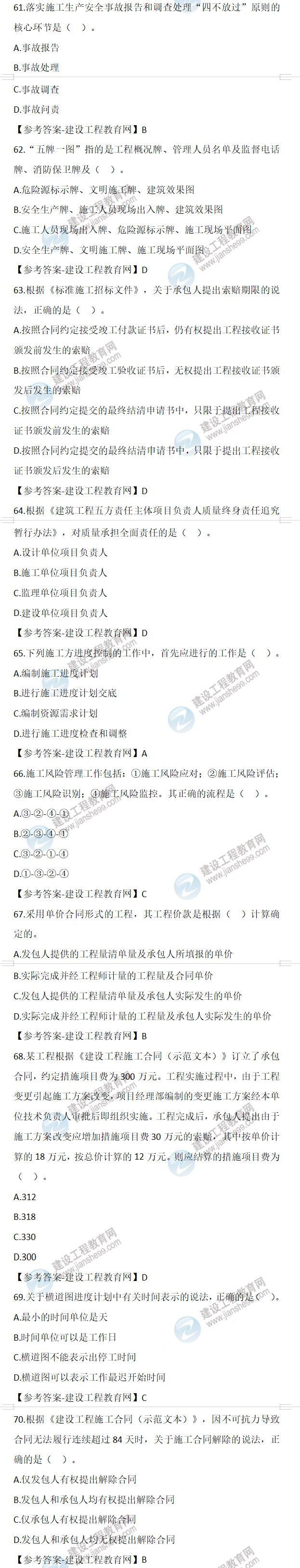 2022年二級建造師施工管理試題及答案61-70(11日上午)