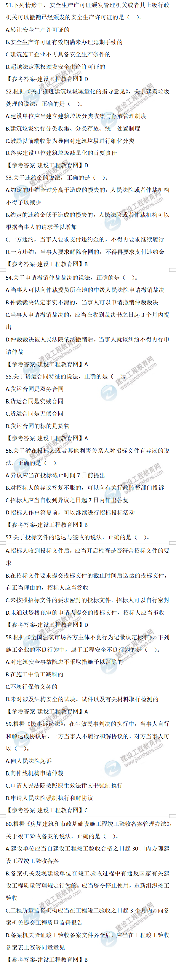 2022年二級建造師工程法規(guī)試題及答案51-60(11日2天3科)
