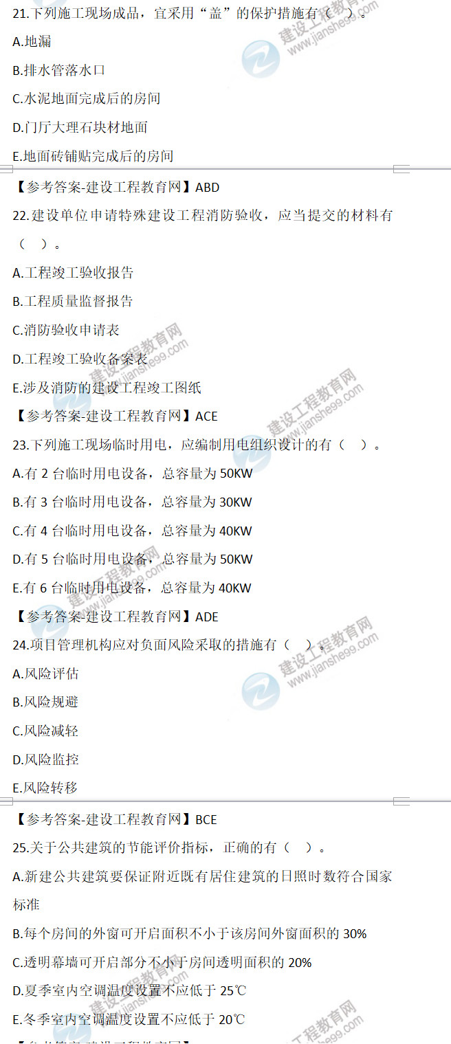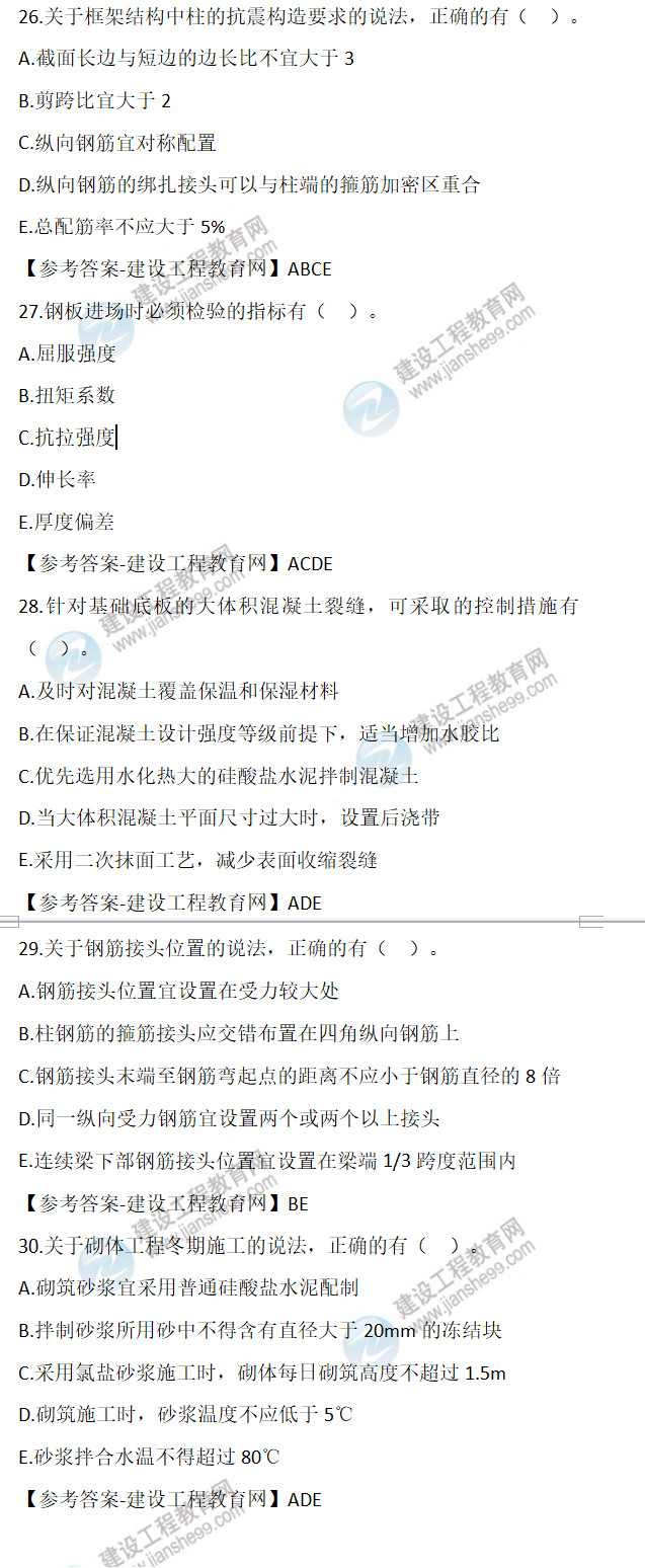 2022年二級(jí)建造師建筑工程實(shí)務(wù)試題及答案第21-30題(6月12日)