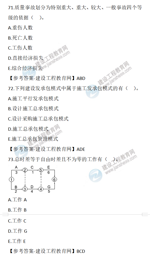 2022年二級建造師施工管理試題及答案71-80(6月12日)