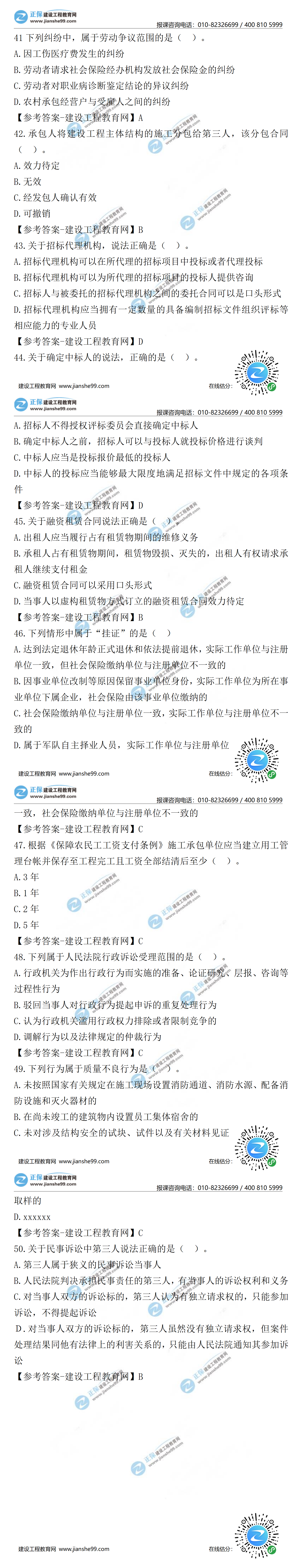 2021年二級(jí)建造師工程法規(guī)試題及答案第41-50題