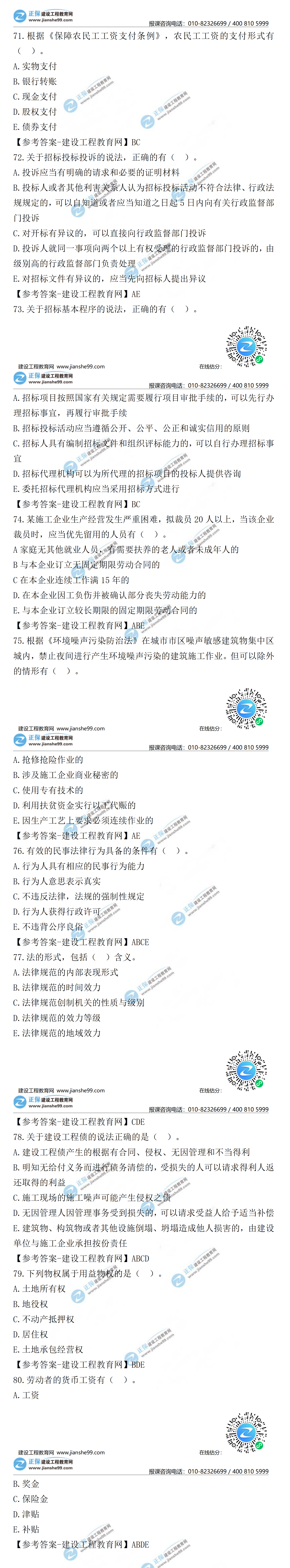 2021年二級(jí)建造師工程法規(guī)試題及答案第71-80題