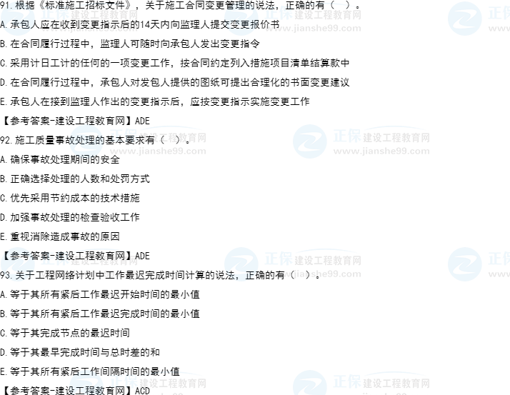 2022年二級(jí)建造師施工管理試題及答案91-95(11日下午)