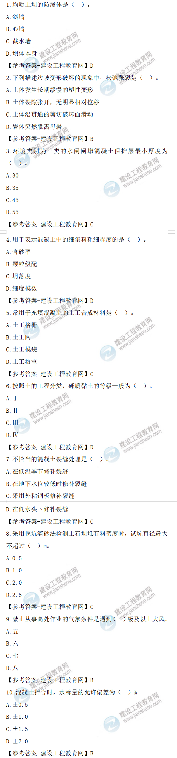 2022年二級建造師水利實(shí)務(wù)試題及答案第1-10題(12日2天3科)