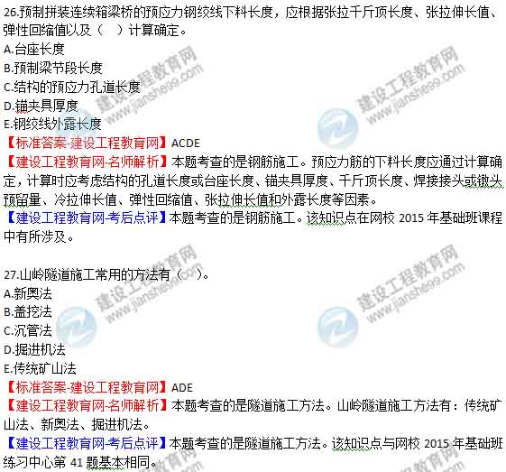 2015年二級(jí)建造師《公路工程管理與實(shí)務(wù)》答案及解析由老師整理而成,部分網(wǎng)站未經(jīng)許可擅自轉(zhuǎn)載、抄襲,造成內(nèi)容有所缺失或錯(cuò)誤,請(qǐng)大家以建設(shè)工程教育網(wǎng)發(fā)布為準(zhǔn)!