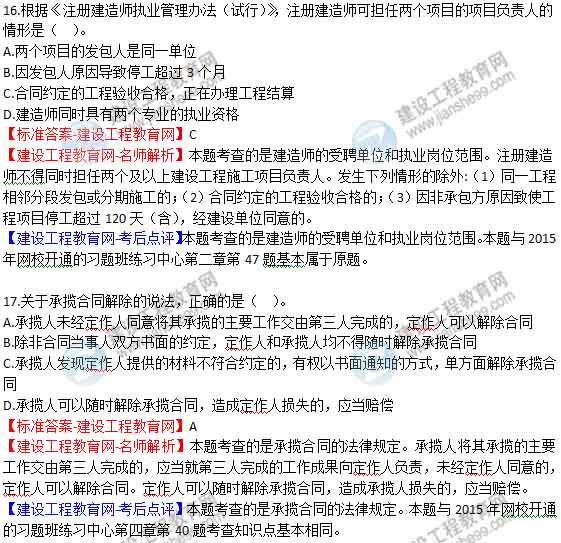 【老師解析】2015年二建法規(guī)及相關(guān)知識試題及答案(13-18題)