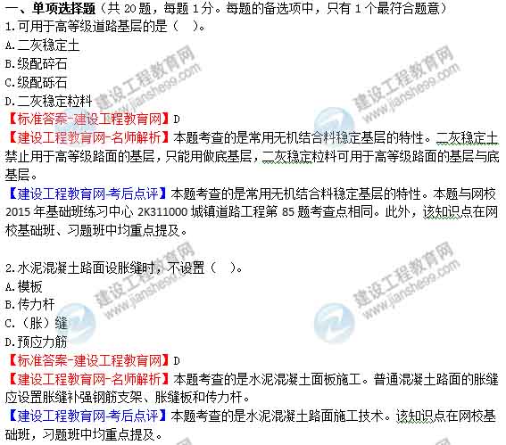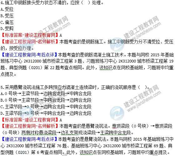 2015年二級(jí)建造師《市政公用工程管理與實(shí)務(wù)》答案及解析由老師整理而成,部分網(wǎng)站未經(jīng)許可擅自轉(zhuǎn)載、抄襲,造成內(nèi)容有所缺失或錯(cuò)誤,請(qǐng)大家以建設(shè)工程教育網(wǎng)發(fā)布為準(zhǔn)!二建試題答案