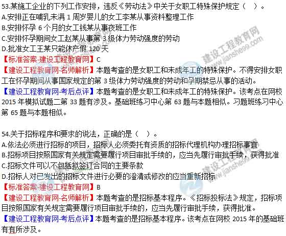 【老師解析】2015年二建法規(guī)及相關知識試題及答案(49-54題)