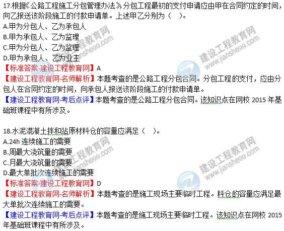 【老師解析】2015年二級建造師公路工程實務(wù)試題及答案(13-18題)