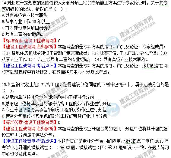 【老師解析】2015年二級建造師建筑實務試題及答案(13-18題)
