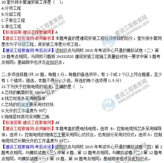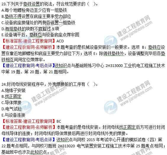 【老師解析】2015年二級建造師機電實務試題及答案(19-24題)