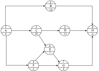 『答案解析』本題考查的是單代號(hào)網(wǎng)絡(luò)計(jì)劃。關(guān)鍵線路只有兩條,總工期為25。