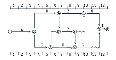 4.從網(wǎng)絡(luò)圖上可以看出,如果想要通過壓縮工作來縮短總工期,只能壓縮關(guān)鍵線路上的工期。本時標(biāo)網(wǎng)絡(luò)圖的關(guān)鍵線路為:A→B→E→H→I,其中可以壓縮的工作有E和H兩項(xiàng),由于壓縮E工作所需要的成本低于H工作所需要的成本。從經(jīng)濟(jì)的角度來看,壓縮工作E更合適。需要增加的成為10萬元。