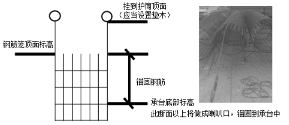 事件二:項目部對已加工好的鋼筋籠做了相應標識,并且設(shè)置了樁頂定位吊環(huán)連接筋,鉆機成孔、清孔后,監(jiān)理工程師驗收合格,立刻組織吊車吊放鋼筋籠和導管,導管底部距孔底0.5m。