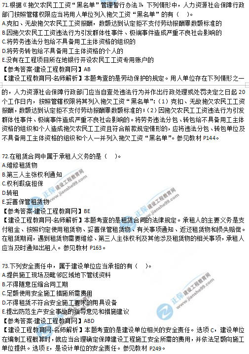 2019年二級建造師法規(guī)考試真題及答案解析71-75