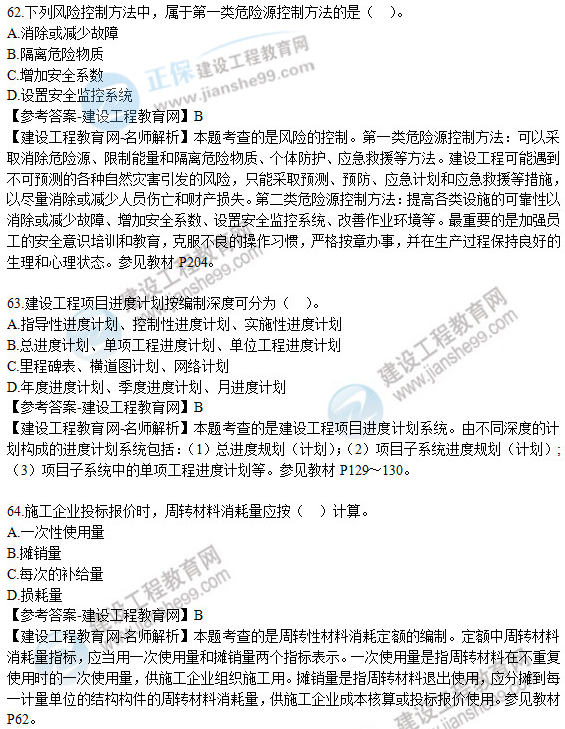 2019年二級(jí)建造師《建設(shè)工程施工管理》試題及答案解析61-65