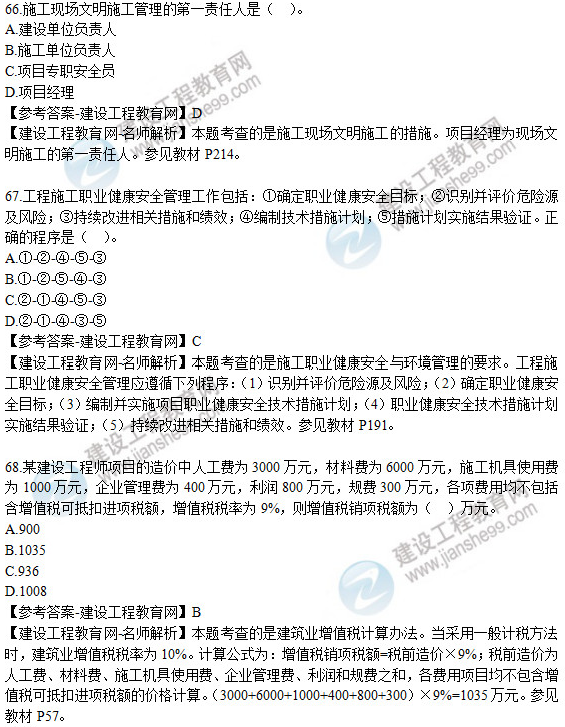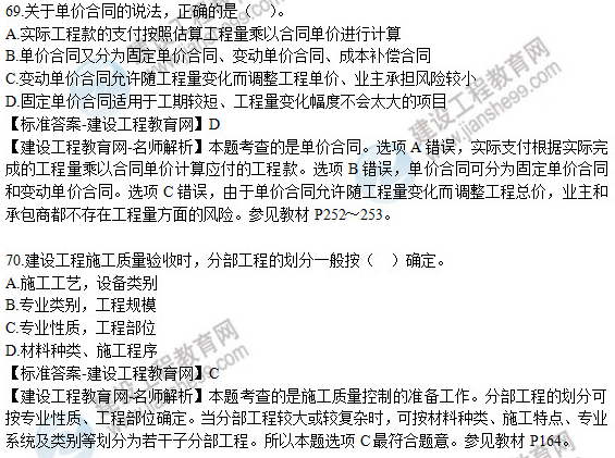 2019年二級建造師《建設工程施工管理》試題及答案解析66-70