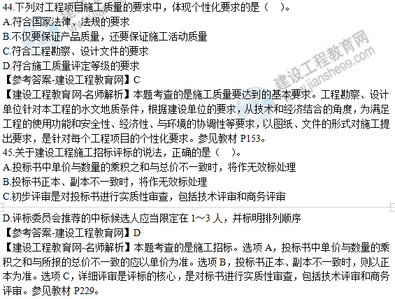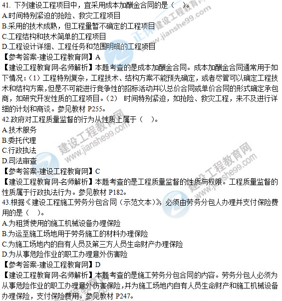 2019年二級(jí)建造師《建設(shè)工程施工管理》試題及答案解析41-45
