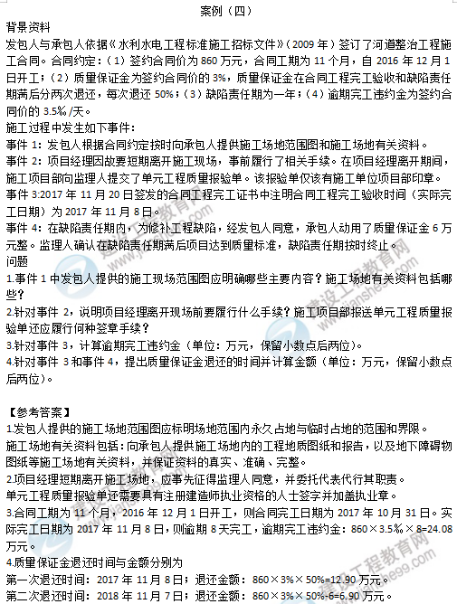 以上就是為大家分享的2019年二級建造師考試水利實務案例分析試題及答案解析,建設工程教育網將持續(xù)關注2020年二級建造師考試的相關信息。更多2020年二級建造師考試內容,盡在建設工程教育網二級建造師欄目!