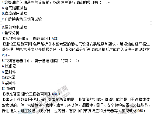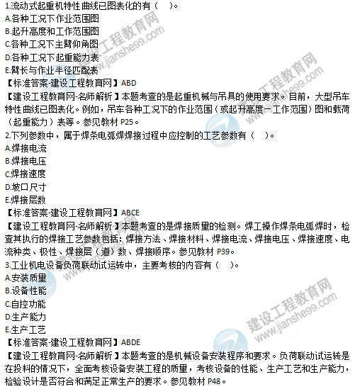 2019年二級建造師機(jī)電實(shí)務(wù)多選題1-5試題及答案解析