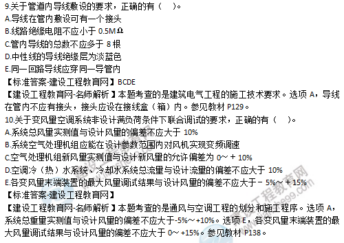 2019年二級(jí)建造師機(jī)電實(shí)務(wù)多選題6-10試題及答案解析