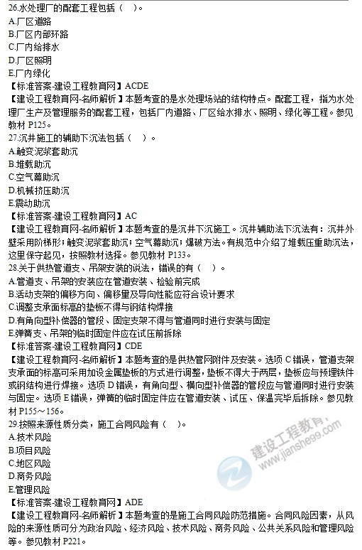 2019年二級(jí)建造師市政實(shí)務(wù)選擇題26-30試題及答案解析