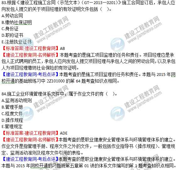 【老師解析】2015年二建施工管理試題及答案(79-84題)