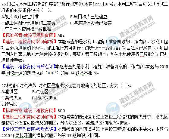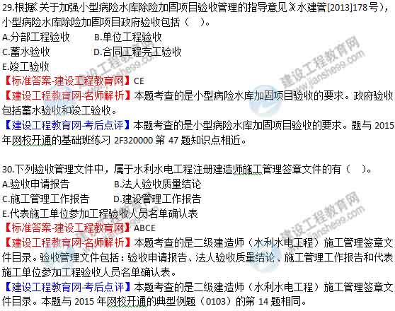 2015年二級(jí)建造師《水利水電工程管理與實(shí)務(wù)》答案及解析由老師整理而成,部分網(wǎng)站未經(jīng)許可擅自轉(zhuǎn)載、抄襲,造成內(nèi)容有所缺失或錯(cuò)誤,請(qǐng)大家以建設(shè)工程教育網(wǎng)發(fā)布為準(zhǔn)!