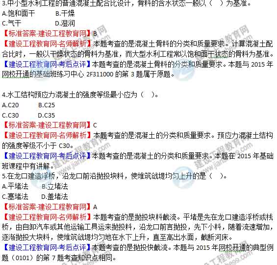【老師解析】2015年二級建造師水利水電實(shí)務(wù)試題及答案(2-6題)