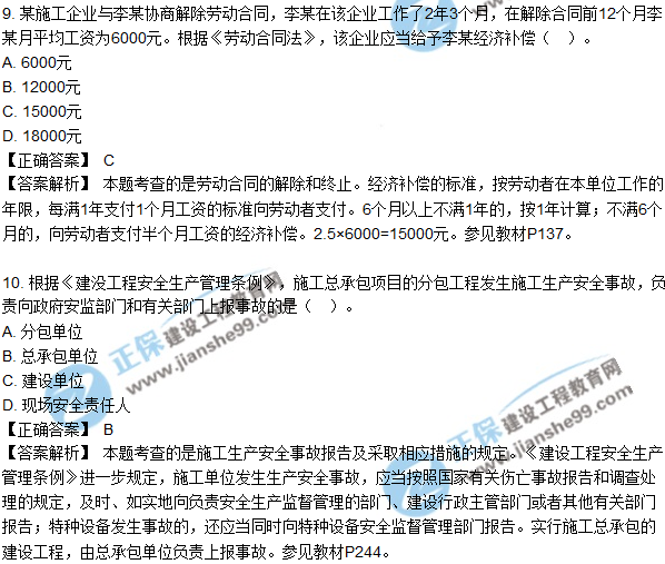 2018年二建《法規(guī)及相關(guān)知識》試題及答案解析(1-10)
