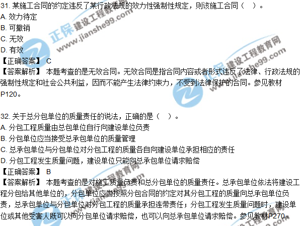 2018年二建《法規(guī)及相關(guān)知識(shí)》試題及答案解析(31-40)