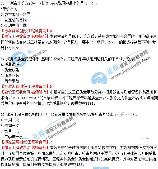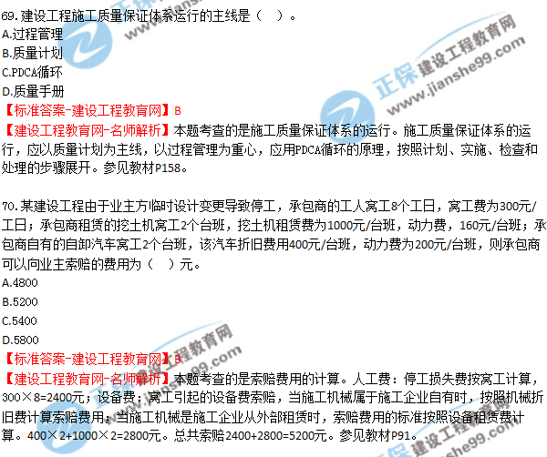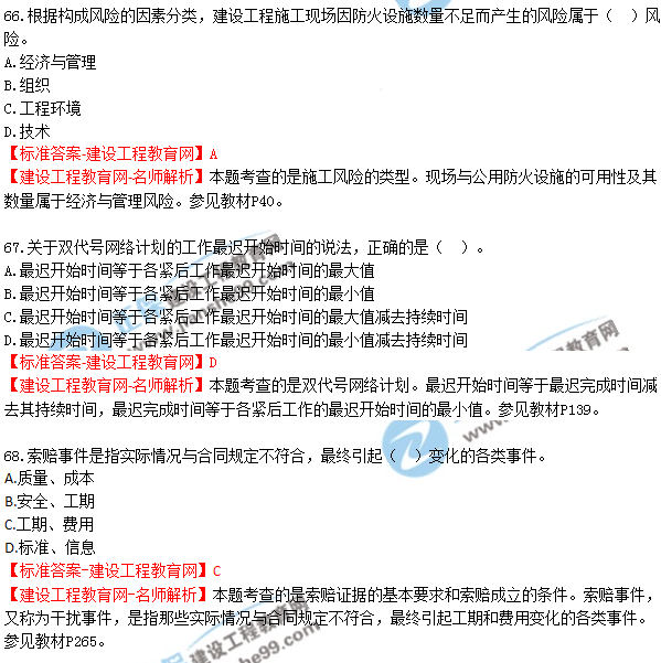 2018年二建《建設(shè)工程施工管理》試題及答案解析(61-70)