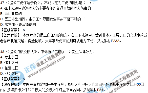2018年二建《法規(guī)及相關(guān)知識(shí)》試題及答案解析(41-50)