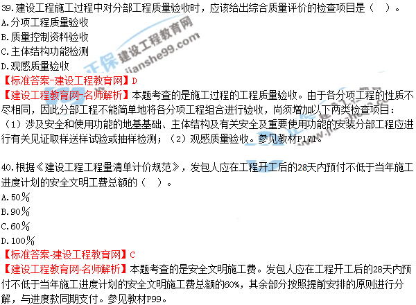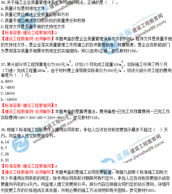 2018年二建《建設(shè)工程施工管理》試題及答案解析(31-40)