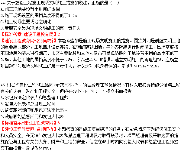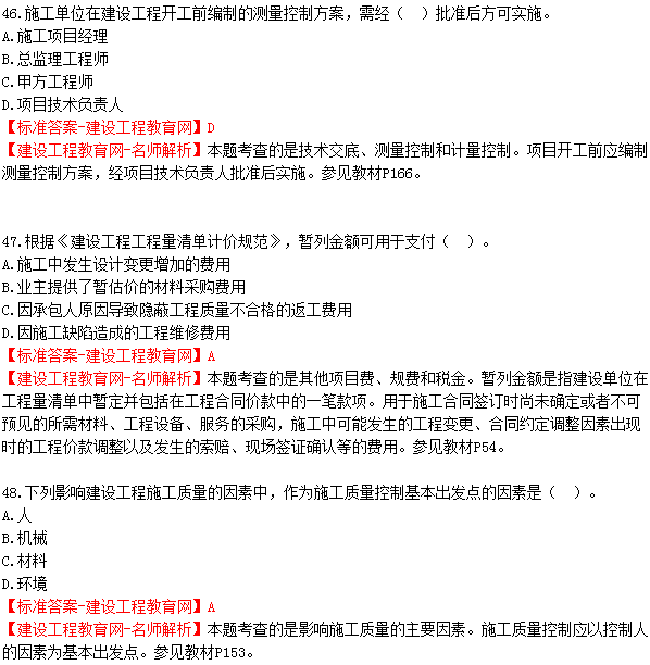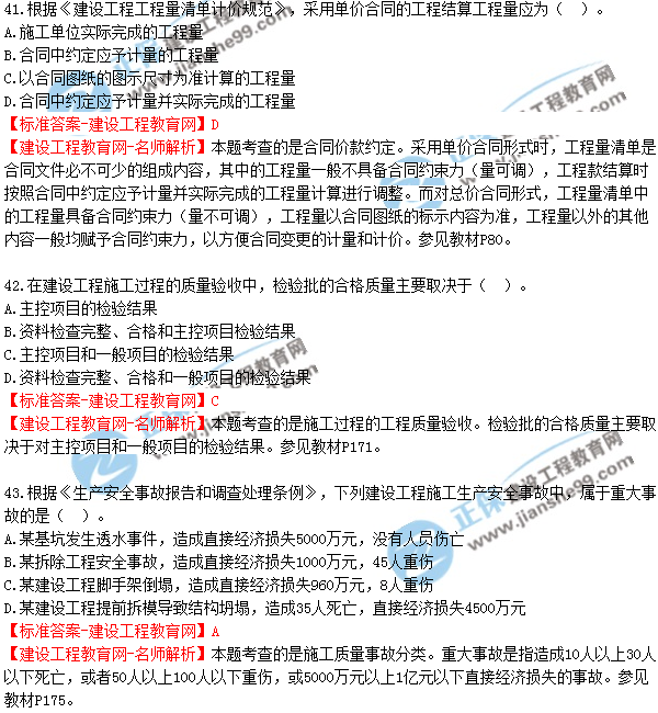 2018年二建《建設(shè)工程施工管理》試題及答案解析(41-50)