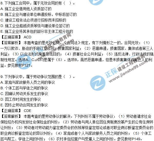 2018年二建《法規(guī)及相關(guān)知識(shí)》試題及答案解析多選1-10