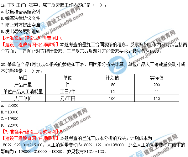 2018年二建《建設(shè)工程施工管理》試題及答案解析(11-20)