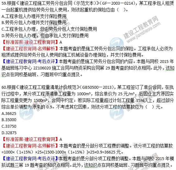2015年二級(jí)建造師《建設(shè)工程施工管理》答案及解析由老師整理而成,部分網(wǎng)站未經(jīng)許可擅自轉(zhuǎn)載、抄襲,造成內(nèi)容有所缺失或錯(cuò)誤,請(qǐng)大家以建設(shè)工程教育網(wǎng)發(fā)布為準(zhǔn)!二建試題答案
