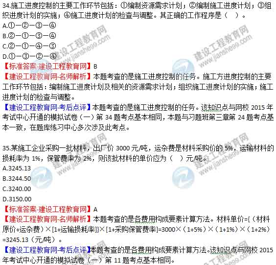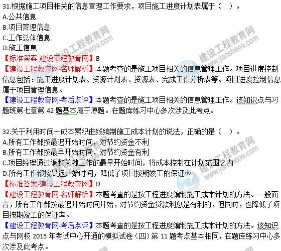 2015年二級(jí)建造師《建設(shè)工程施工管理》答案及解析由老師整理而成,部分網(wǎng)站未經(jīng)許可擅自轉(zhuǎn)載、抄襲,造成內(nèi)容有所缺失或錯(cuò)誤,請(qǐng)大家以建設(shè)工程教育網(wǎng)發(fā)布為準(zhǔn)!2015二建試題答案解析
