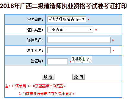 2018年廣西二級建造師準(zhǔn)考證打印入口開通