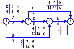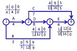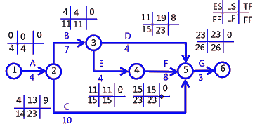 FFB=min{ES緊后}-EFB=min{3,3}-3=3-3=0