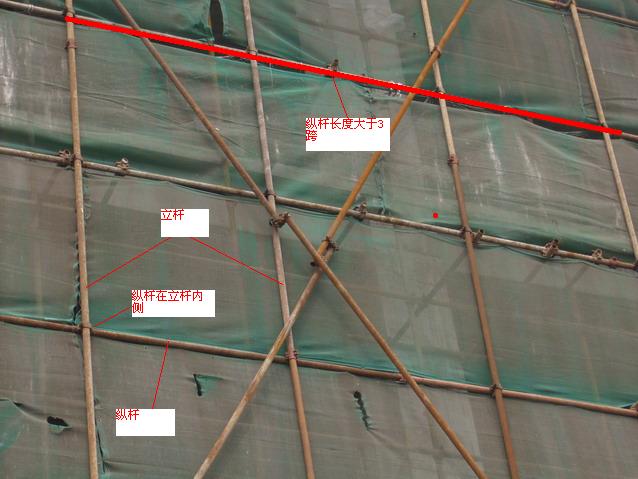 那立桿就是緊貼墻的那兩根嗎?縱桿設(shè)置在立桿內(nèi)側(cè),這句話不理解,其長(zhǎng)度不小于3跨,就是一根縱桿的長(zhǎng)度最短也要達(dá)到3跨,是嗎?