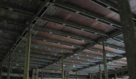 上圖中豎著的立柱就是支撐系統(tǒng)。支撐系統(tǒng)上面頂著的是樓板的模板,待澆筑完混凝土達到一定強度后,才能拆模。
