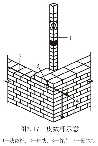 下圖是皮數桿的示意圖,皮數桿是指在其上劃有每皮磚和灰縫厚度,以及門窗洞口、過梁、樓板等高度位置的一種木制標桿。砌筑時用來控制墻體豎向尺寸及各部位構件的豎向標高,并保證灰縫厚度的均勻性。